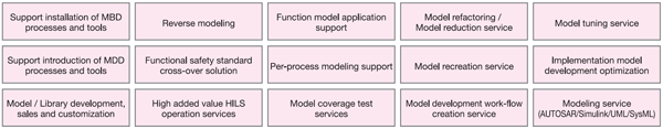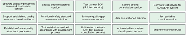 We provide engineering services to support customer development based on our over 30 years of experience in embedded tool development. As a experienced tool vender we have access to extensive embedded industry information valuable to our customers. At present we primarily provide a wide variety of services for model-based development related support and embedded software quality improvement.