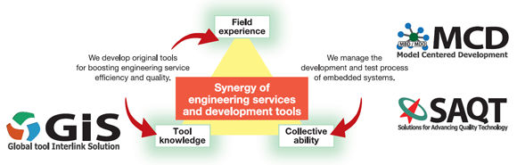 Currently MBD using MATLAB/Simulink models has become a focal point in automotive embedded system design. Meanwhile, MDD using UML (Unified Modeling Language) or ADL (Architecture Description Language) is emerging as a means for implementing and testing application software. GAIO provides support services for establishing quality development processes and efficient tool introduction to meet the needs of the industry.